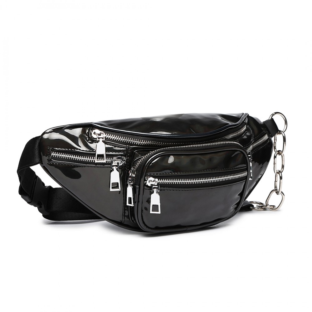 Patent bum bag clearance, E6831-MISS LULU Patent Leather Zip clearance