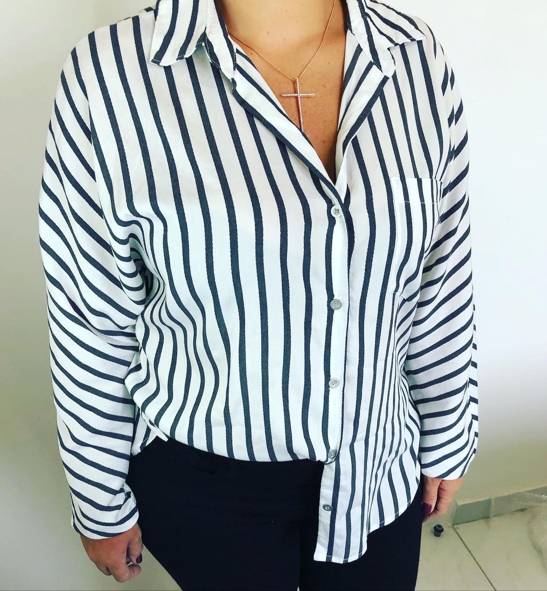 - Camisa feminina social listrada