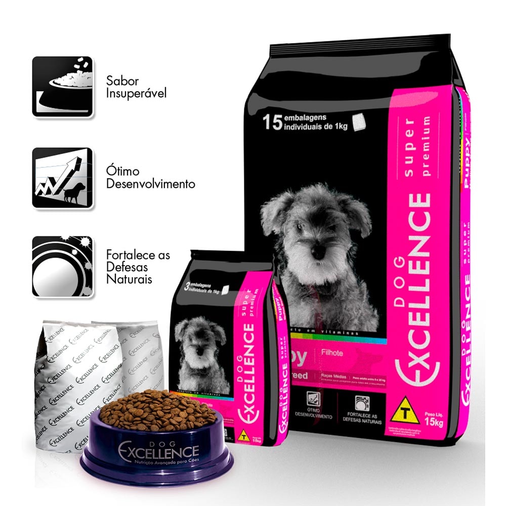 - Dog excellence super premium filhote raças médias outlet