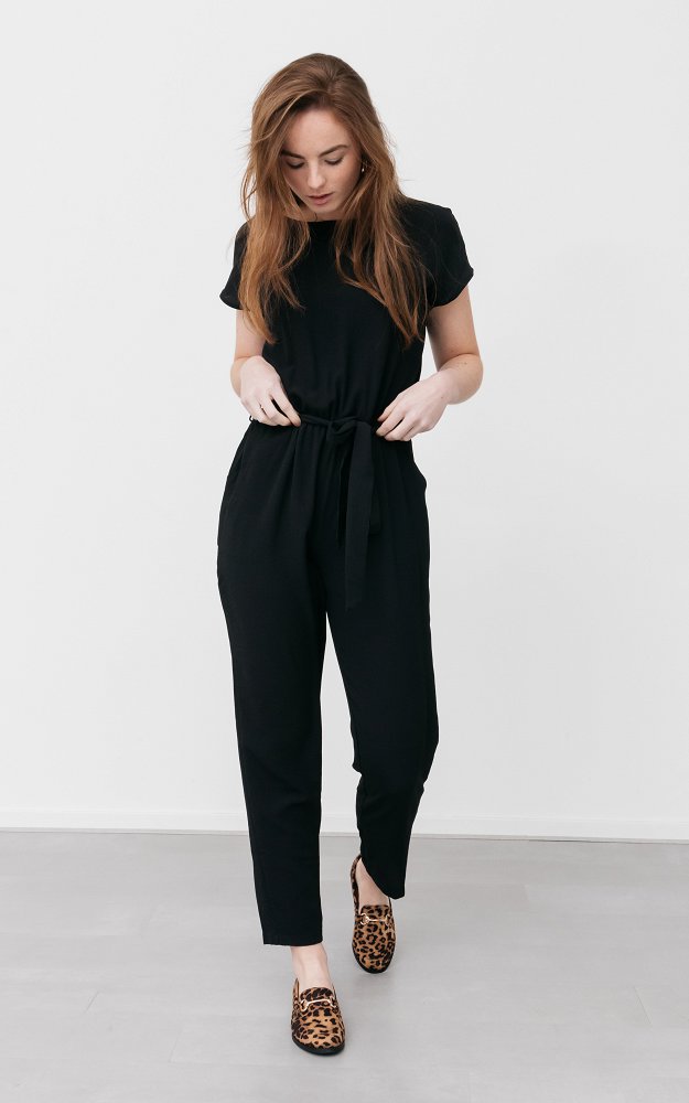 Jolie combinaison clearance, Jolie combinaison palazzo noir croisé en haut avec jolie ceinture clearance