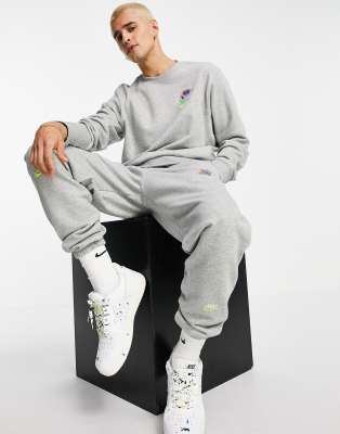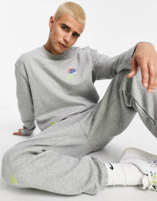 Nike multi logo joggers grey clearance, Nike Essential fleece multi logo crew clearance