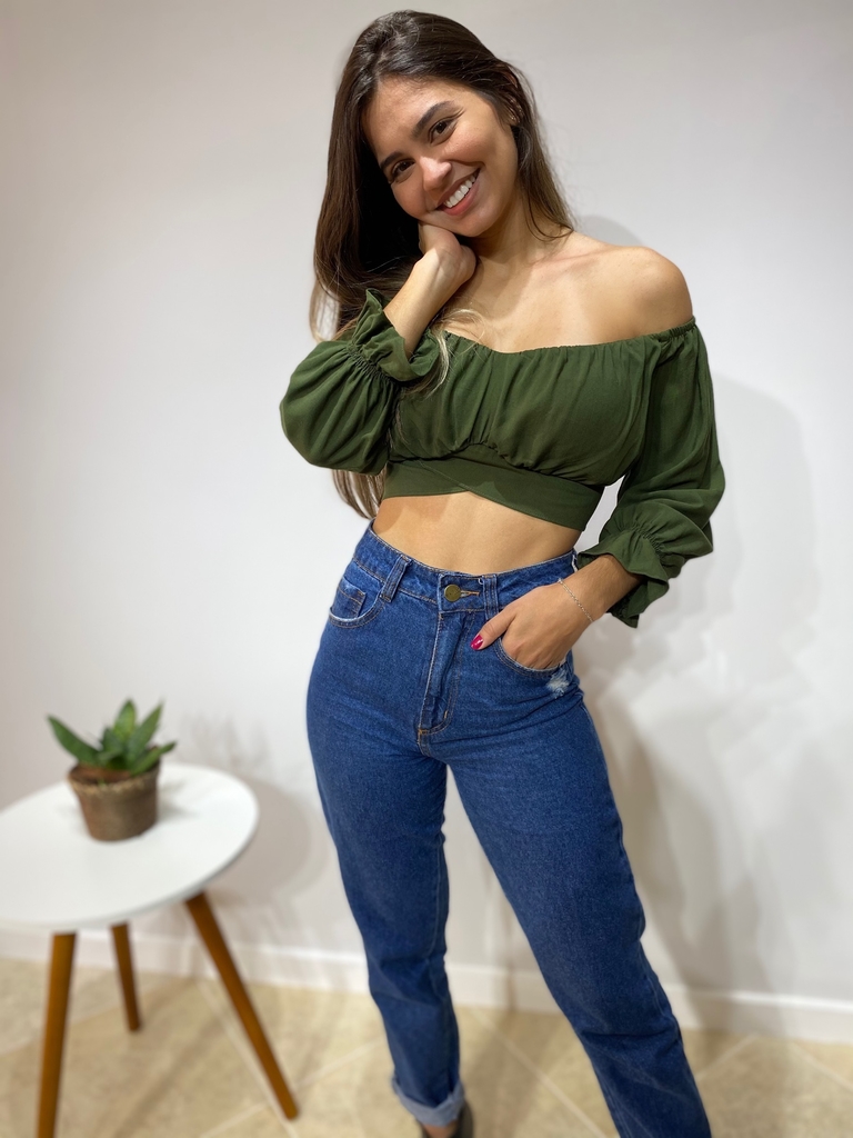 - Cropped ciganinha manga longa