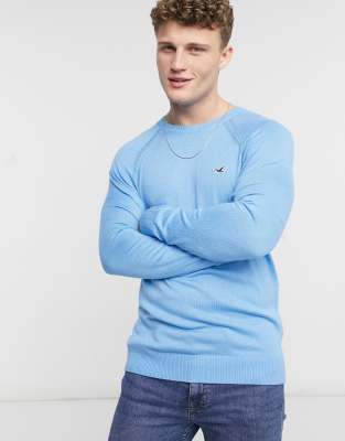 Pull ras du cou hollister clearance, Hollister - Pull ras de cou en maille avec logo emblématique - Bleu moyen | Saluscampusdemadrid clearance
