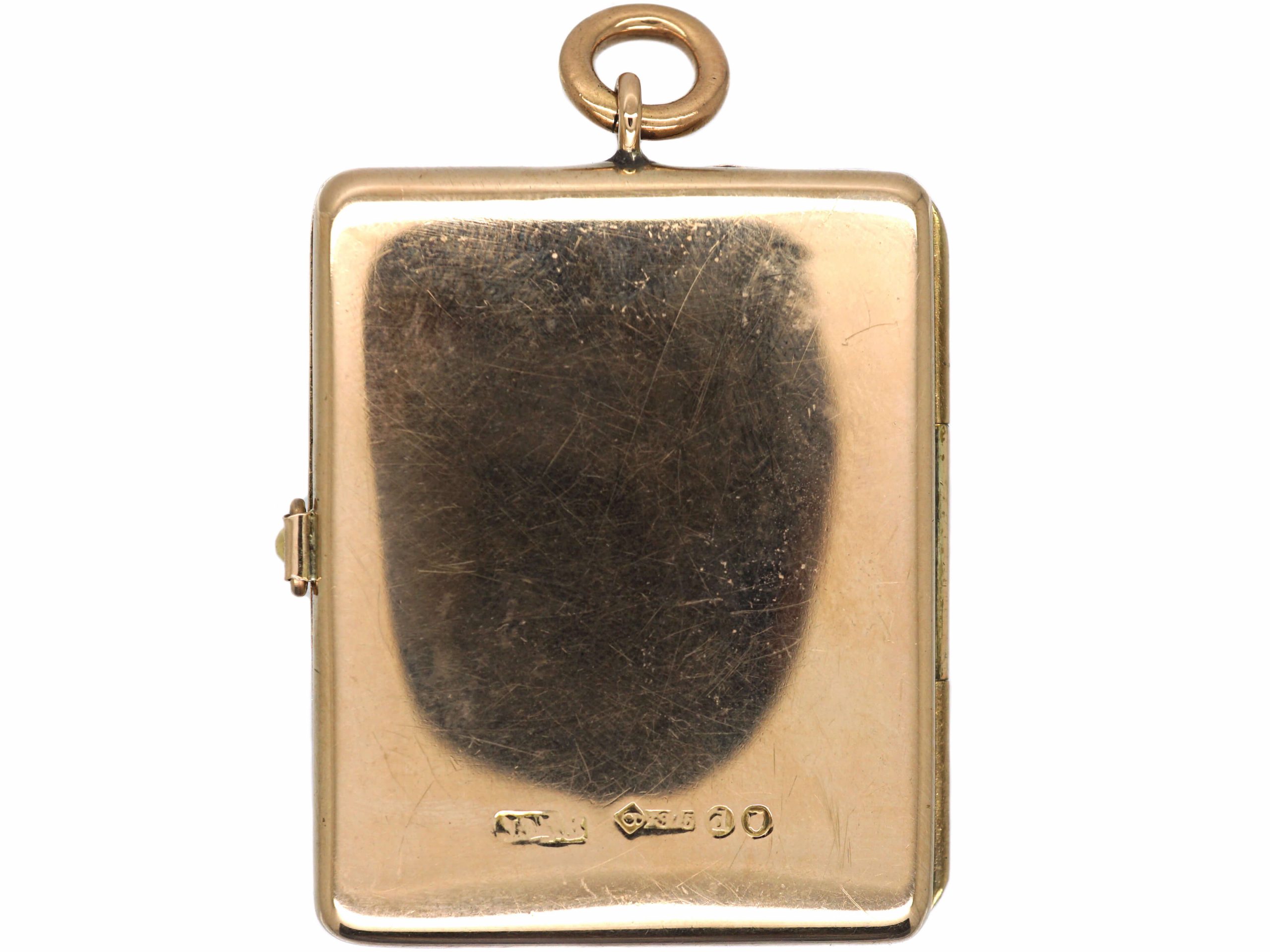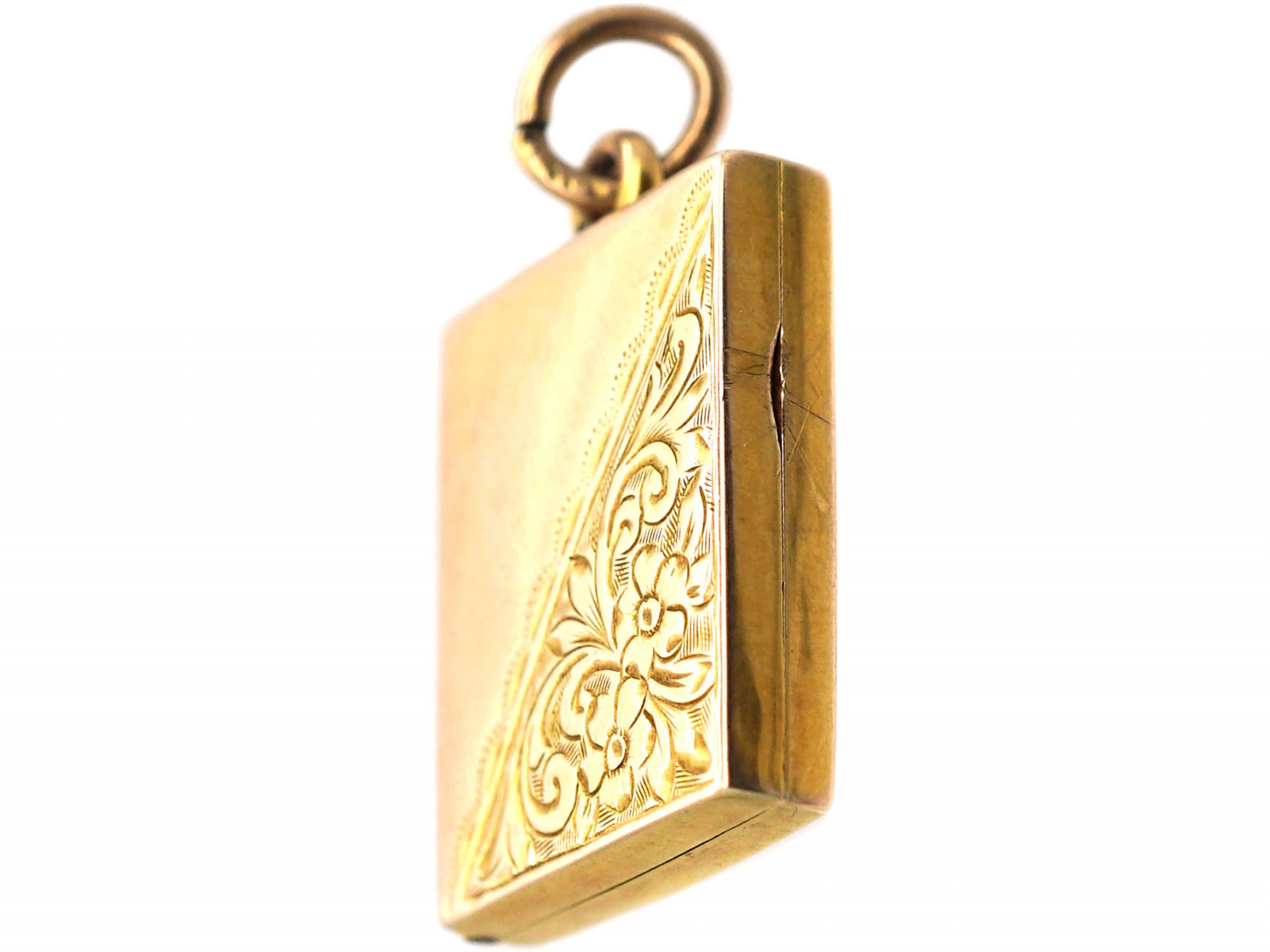 Gold rectangle locket clearance, Edwardian 9ct Gold Rectangular Locket with Engraved Detail (424T) | The Antique Jewellery Company clearance