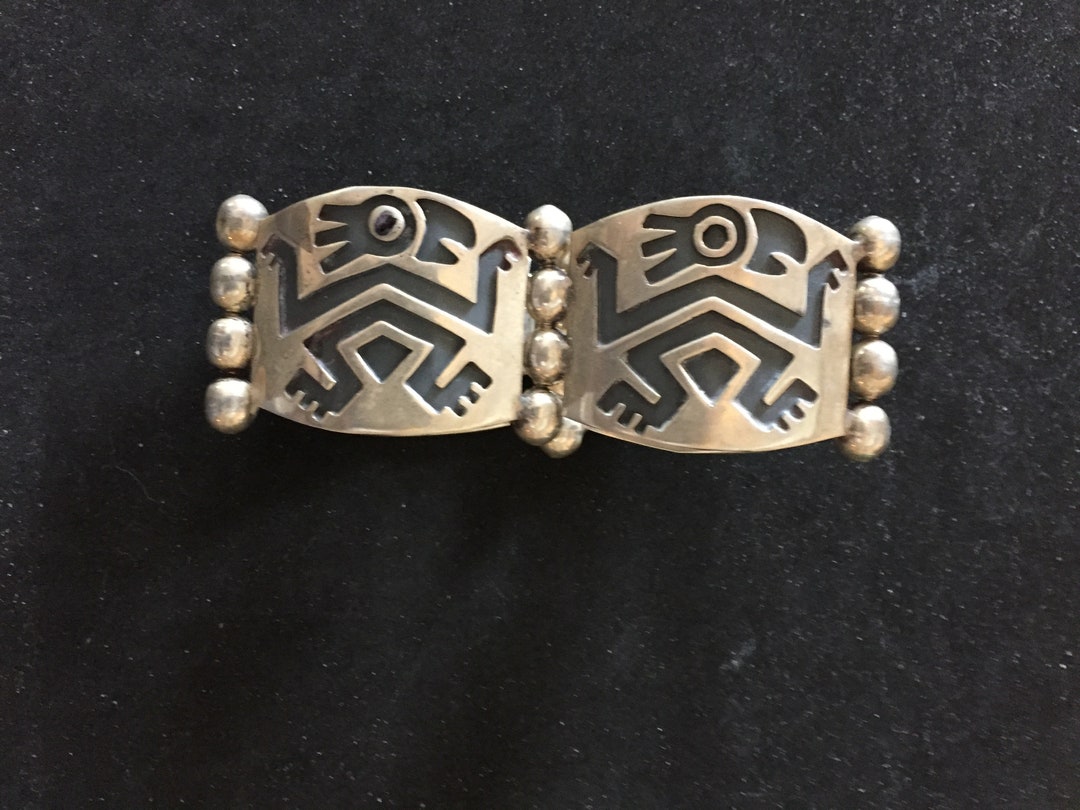 Quetzal bracelet clearance, Guatemala MAYAN TRIBAL AZTEC WARRIOR QUETZAL BIRD Sterling Silver PANEL Bracelet | ap-metals clearance