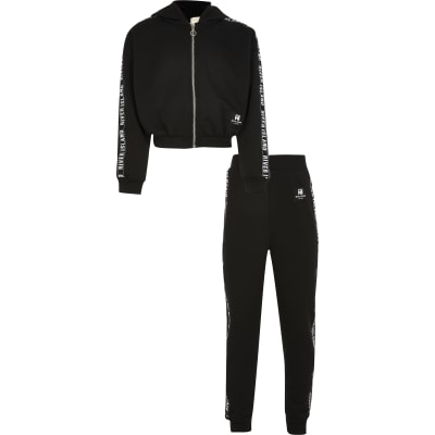 Girls black tracksuit clearance
