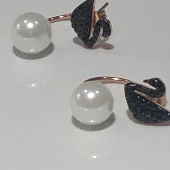 - Swarovski black swan pearl earrings outlet