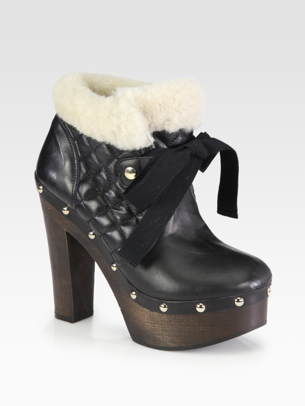 Red valentino stiefel clearance, Red Valentino Leather and Shearling Laceup Ankle Boots in Black | Lyst clearance