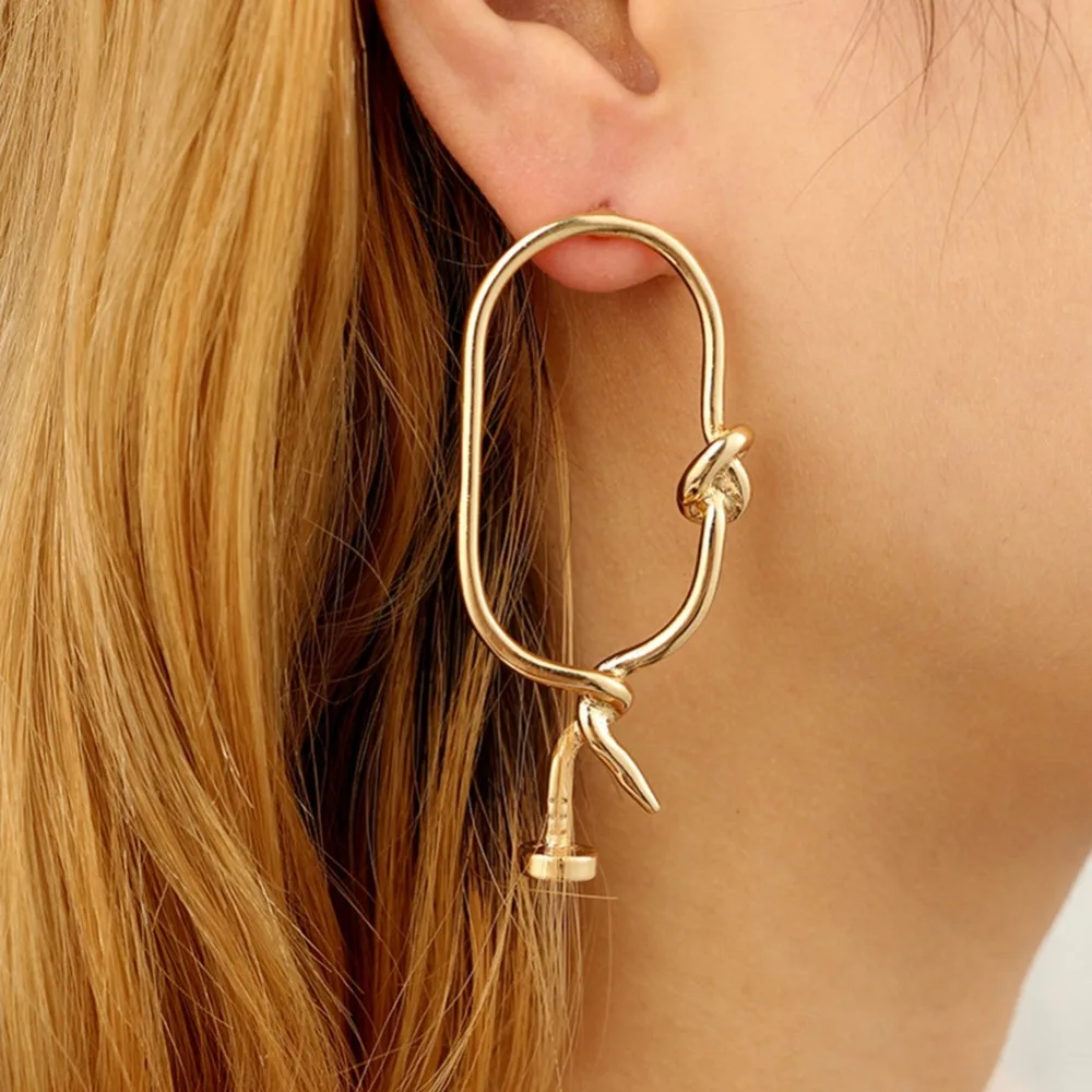 Nail earrings clearance, IMIXLOT Punk Twisted Knotted Nail Earrings For Women Statement Circle Stud Earrings Party clearance