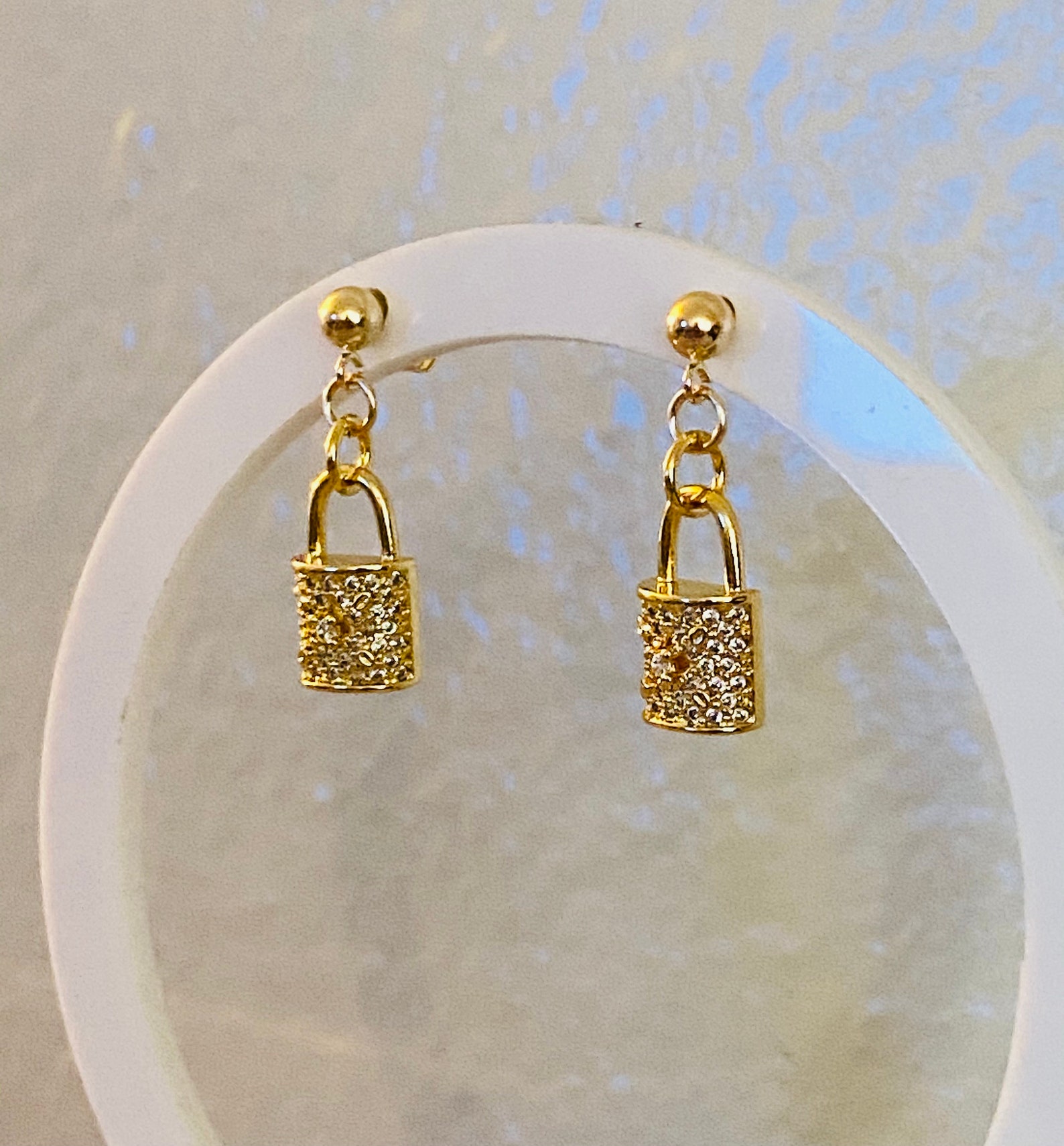Gold padlock earrings clearance