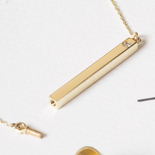 Horizontal bar cremation necklace clearance, 14K 18K Gold Custom Horizontal Cremation Urn Bar Necklace 4 - Etsy clearance