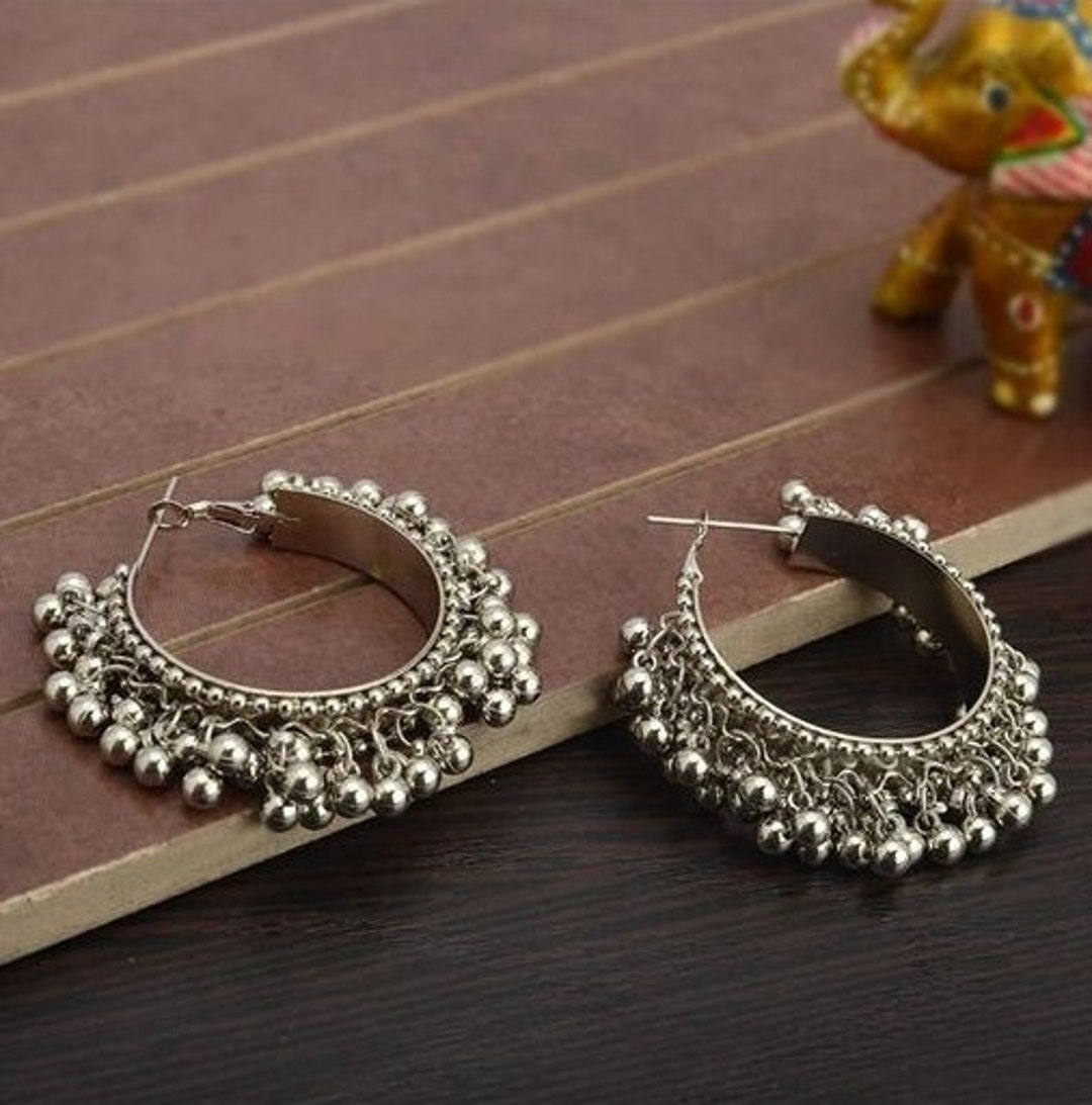 Oxidised hoop jhumkas clearance, Oxidized Silver Plated Light Weight Big Jhumka Jhumki Earrings - Etsy | Silver jewelry clearance