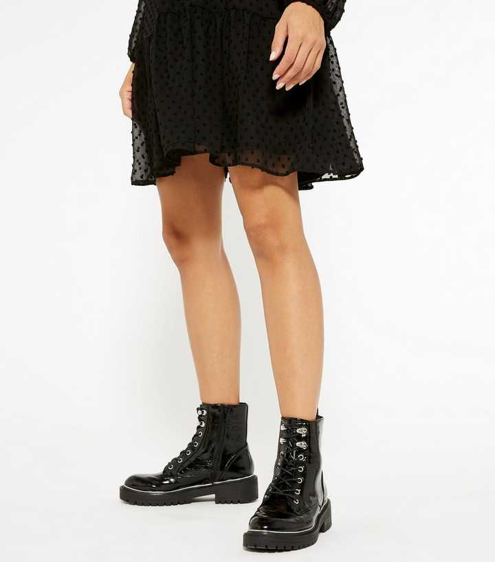 New look crinkle boots clearance, Black Crinkle Patent Heeled Ankle Boots | New Look clearance