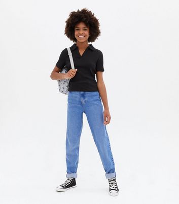 Black polo shirt for girls clearance, Girls Black Ribbed Polo T-Shirt | New Look clearance