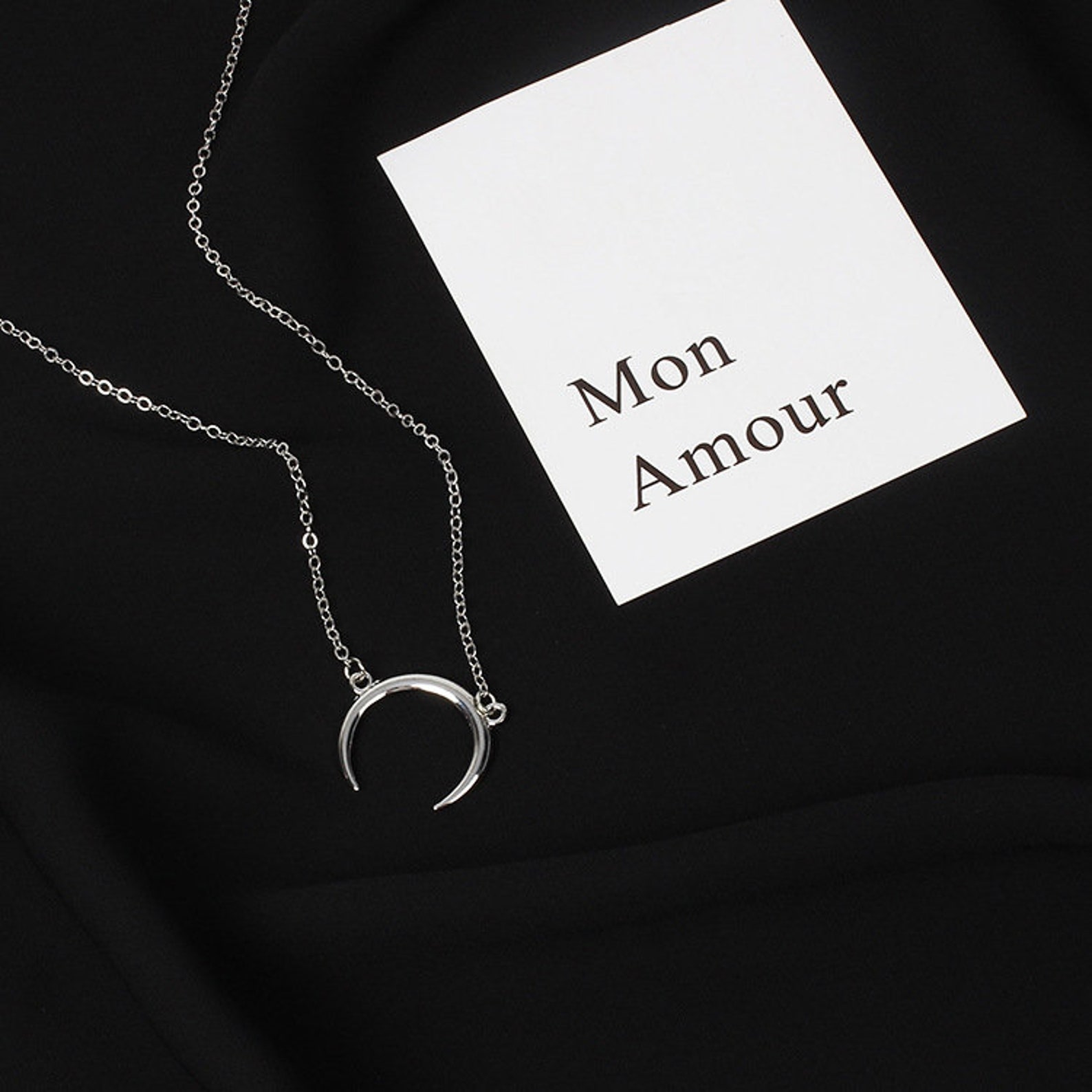 - Minimalist moon necklace sale