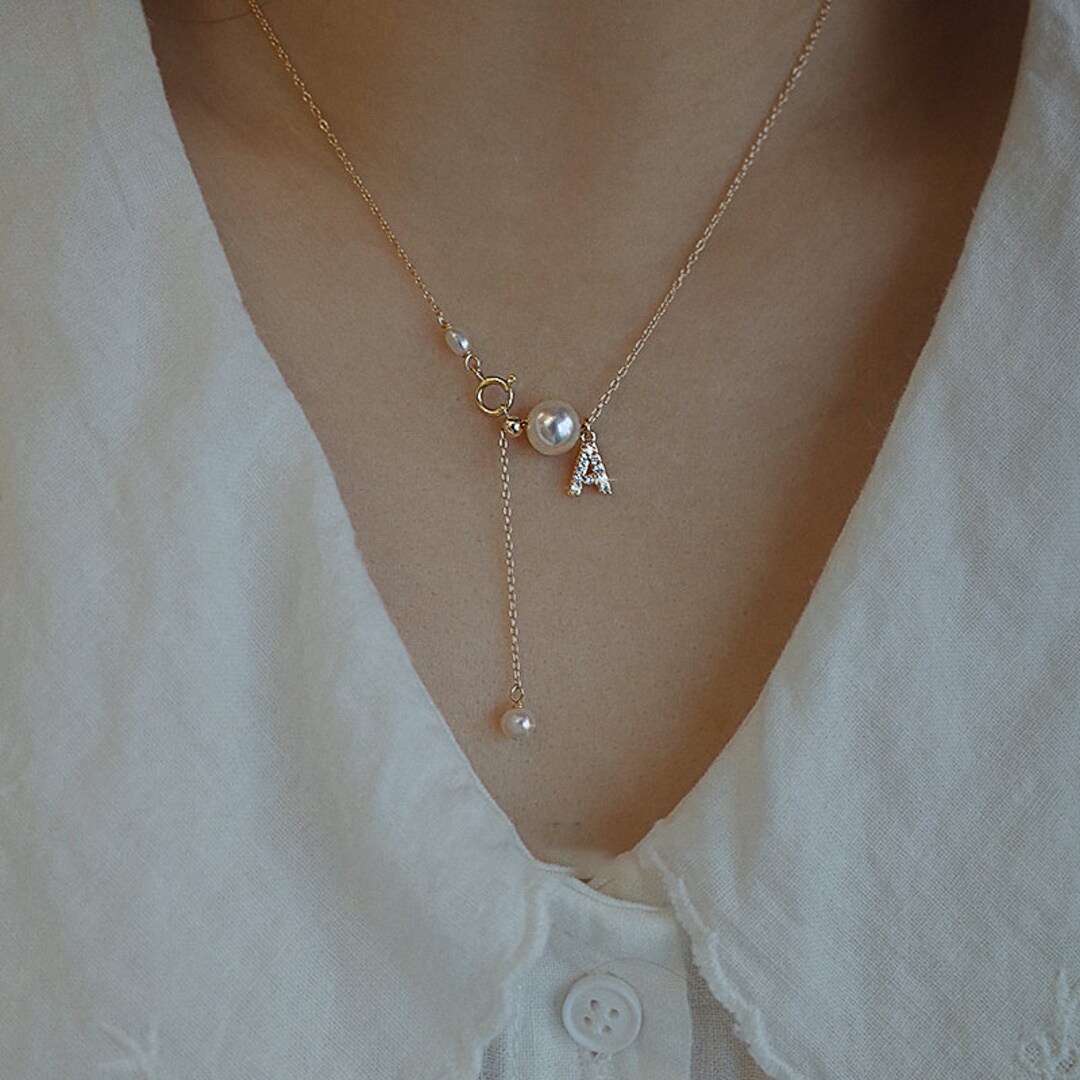 - Pearl choker initial necklace clearance