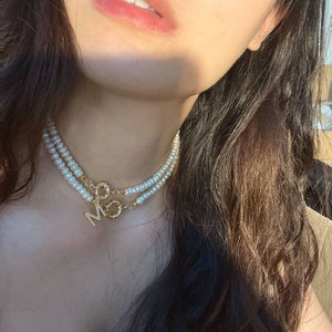 - Pearl choker initial necklace sale