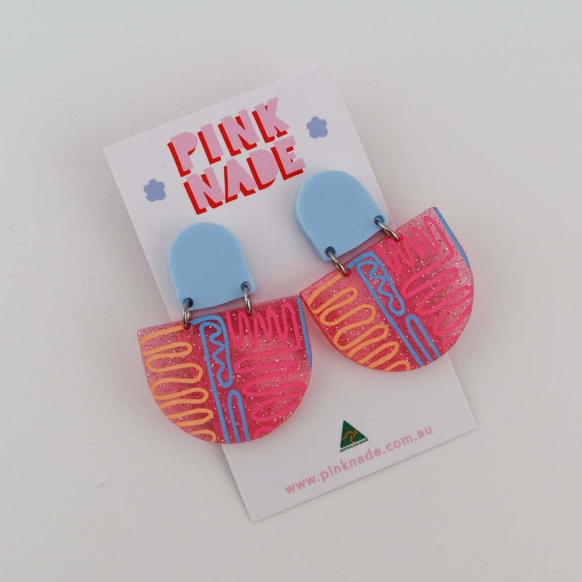 Pink nade earrings clearance, Pink Nade Earrings - The 'Donna' Light Blue / Translucent Pink Contour Acrylic clearance