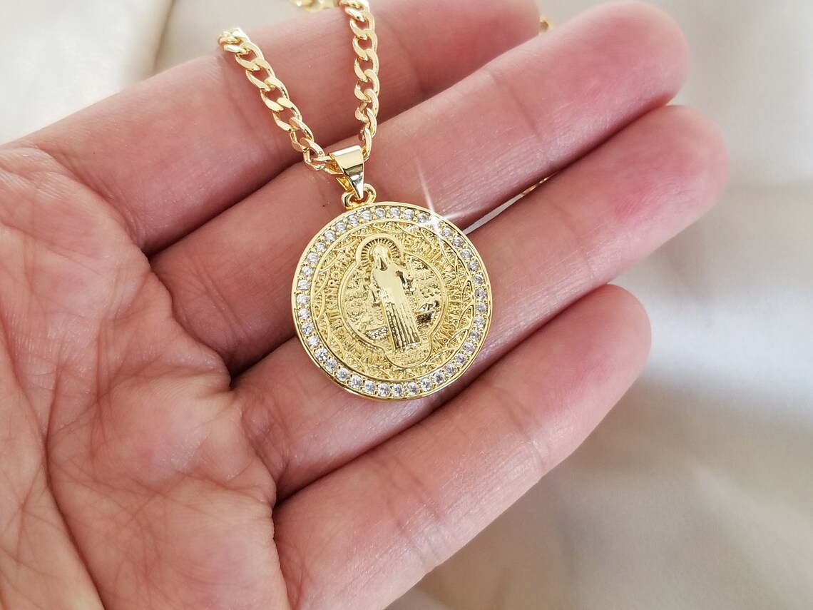 Gold chain with medallion for mens clearance, 18k Gold Medallion Pendant Chain Mens Necklace Gold Saint | Etsy clearance