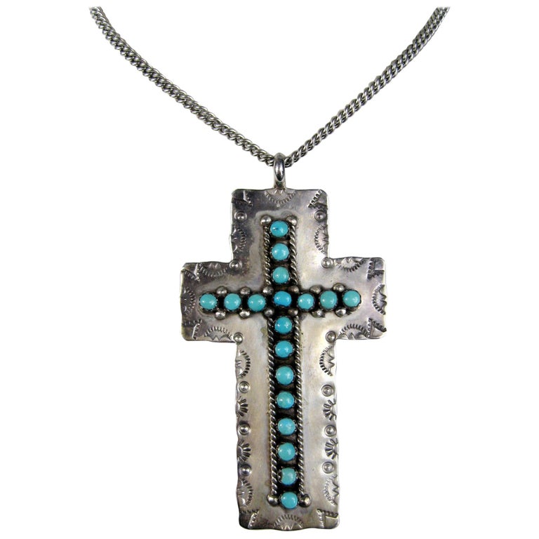 Native american cross pendant clearance, Sterling Silver Turquoise Cross Pendant Necklace Native American Zuni For Sale at 1stDibs clearance