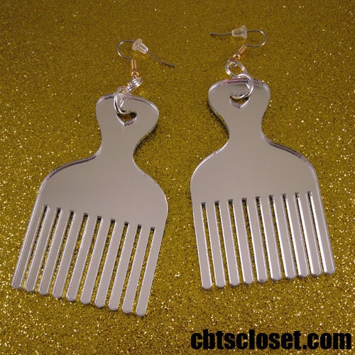 Hair pick earrings clearance, Items similar to Silver Large Afro Pick Comb laser cut earrings cbtscloset on Etsy clearance