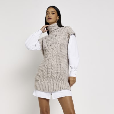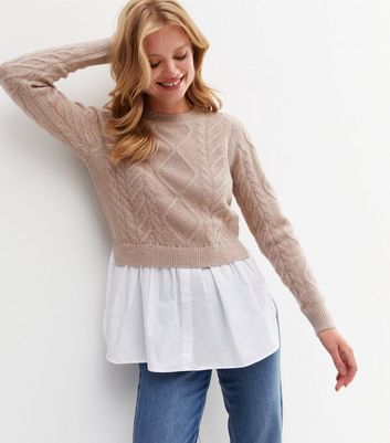 Knitted jumper shirt clearance, Mink Cable Knit 2-in-1 Jumper Shirt clearance