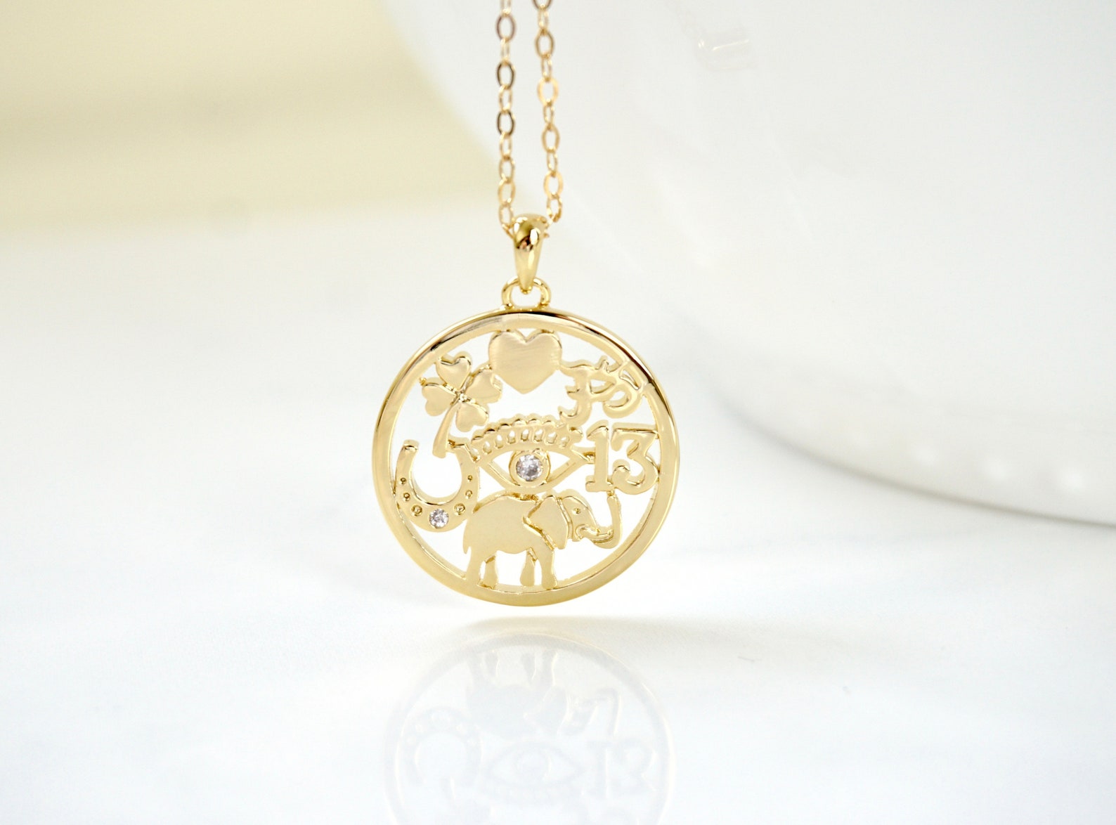 Good luck medallion clearance, Solid 10k Yellow Gold Lucky Charms Amulet Good Luck Medallion Pendant | MLD clearance