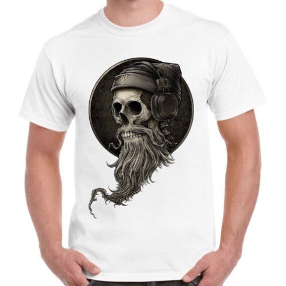 Bearded skull t shirt clearance, Bearded Skull Dj Funny Headphones Cool clearance