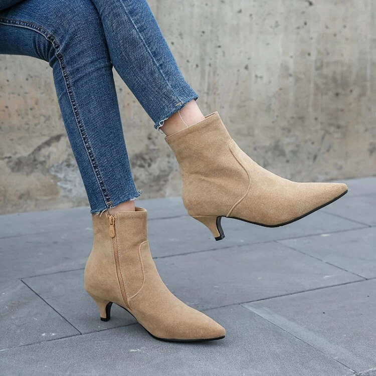 Tan kitten heel booties clearance, Amazon.com | Alsoloveu Women's Kitten Heel Boots Pointed Toe Ankle Boots Side Zipper Low Heel Booties Size 6 US, Beige | Shoes clearance