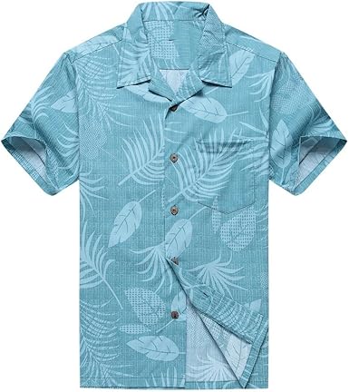 Teal hawaiian shirt clearance, Island Leaf Turquoise Poly Cotton Men's Hawaiian Shirt , 2XL - S clearance