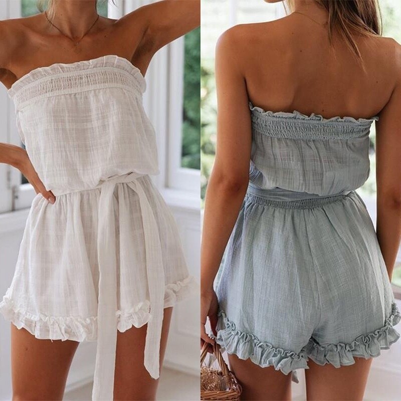 Strapless beach playsuit clearance, ISSHE Womens Summer Playsuits Bandeau clearance