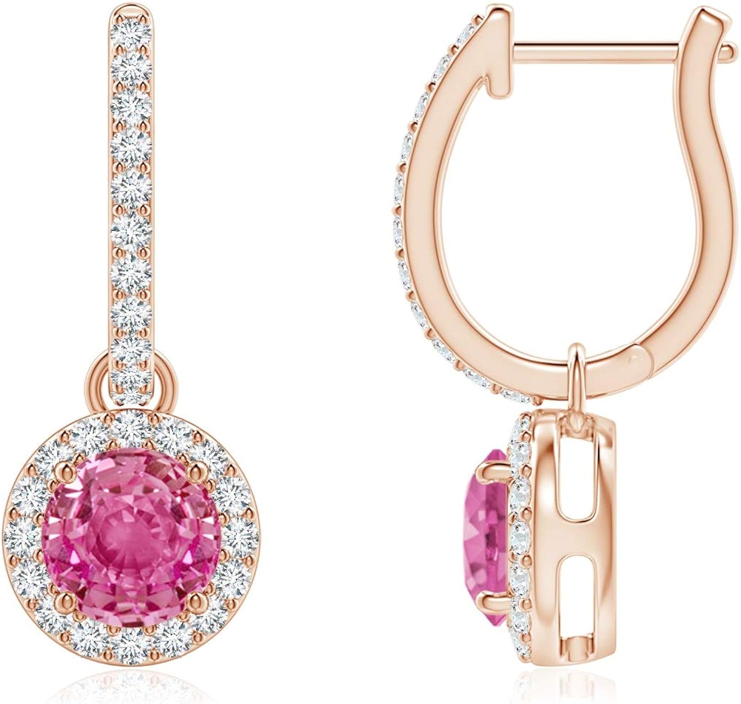Sapphire earrings amazon clearance, Holiday Gift - Round Pink Sapphire Dangle Earrings with Diamond Halo in 10K Rose Gold (5mm Pink clearance