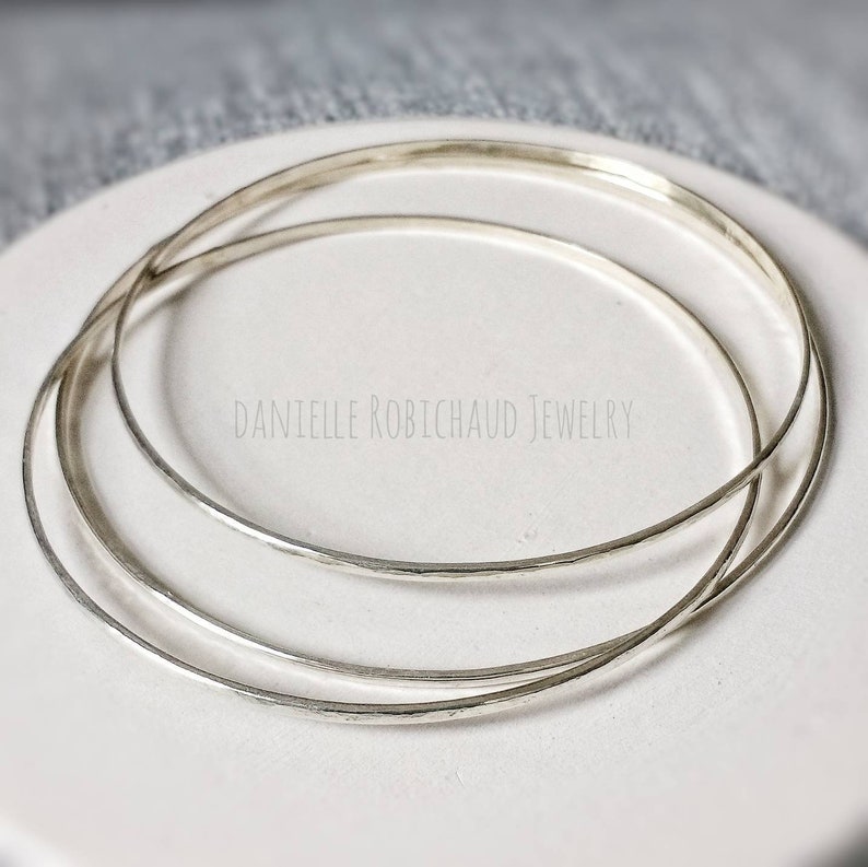 - Thin silver bangle bracelets