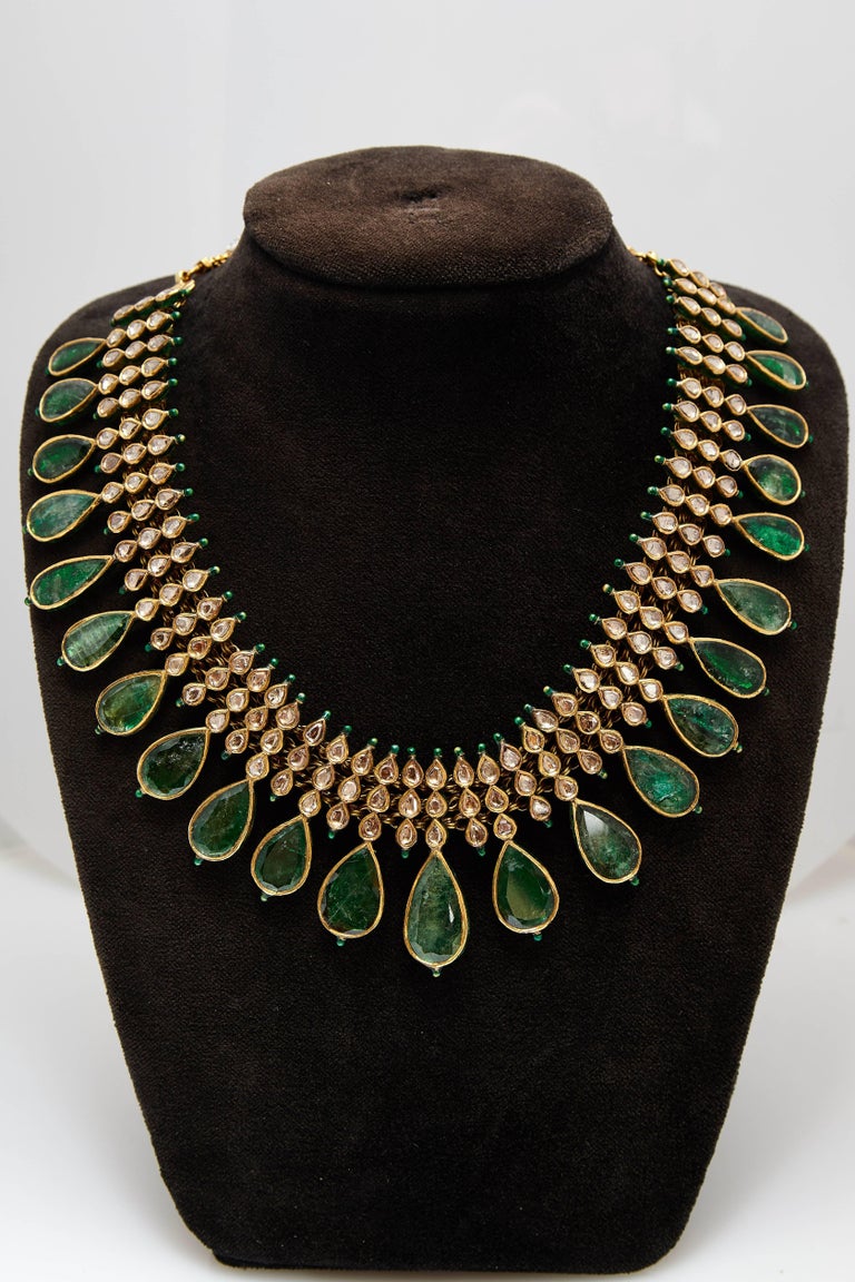Emerald gold necklace price clearance, Emerald with Diamond Necklace Set in 18 Karat Gold Settings For Sale at 1stDibs | 18 karat gold clearance