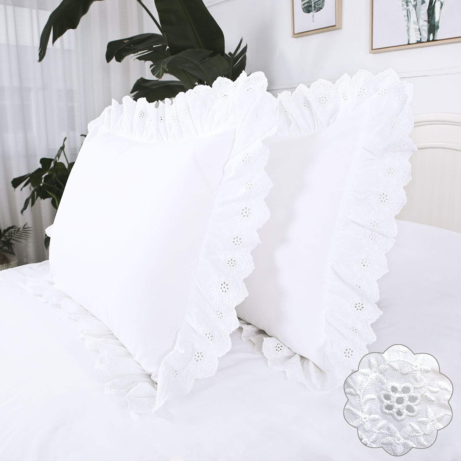 White ruffle pillows clearance