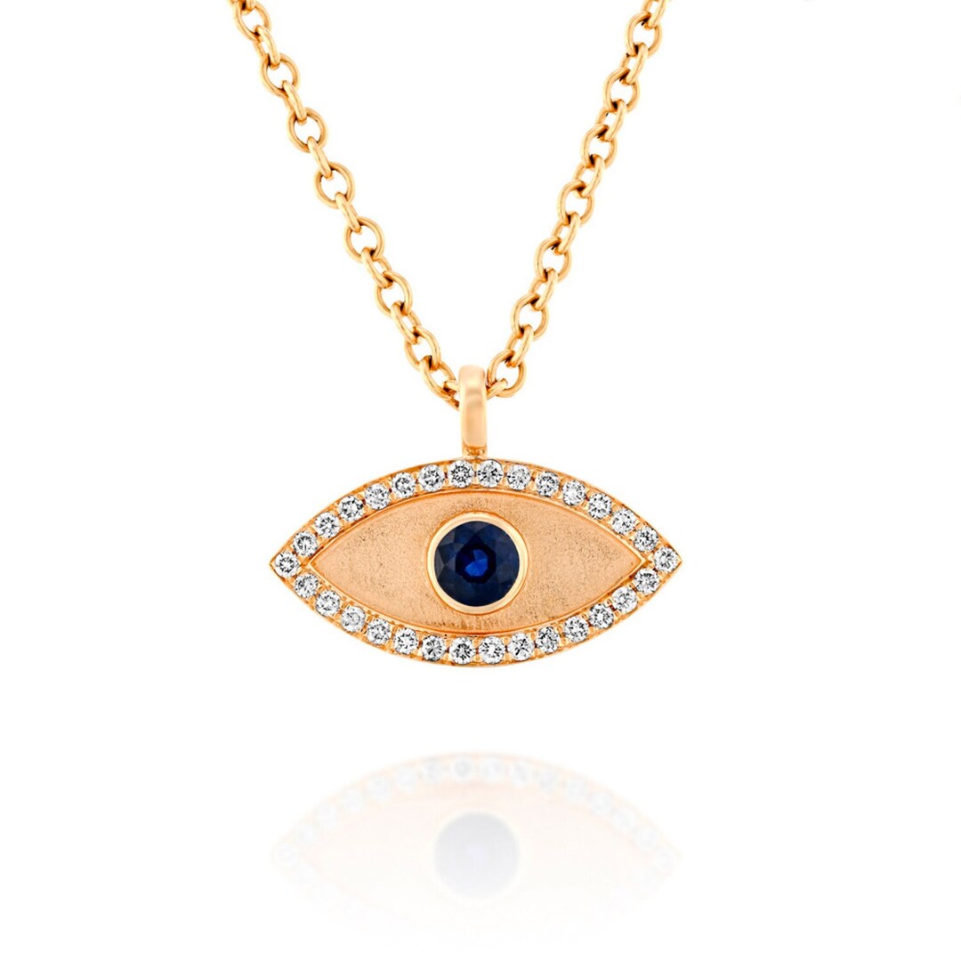 Rose gold evil eye pendant clearance, New 18K Rose Gold Evil Eye Pendant With Diamonds and Sapphire. - Etsy clearance