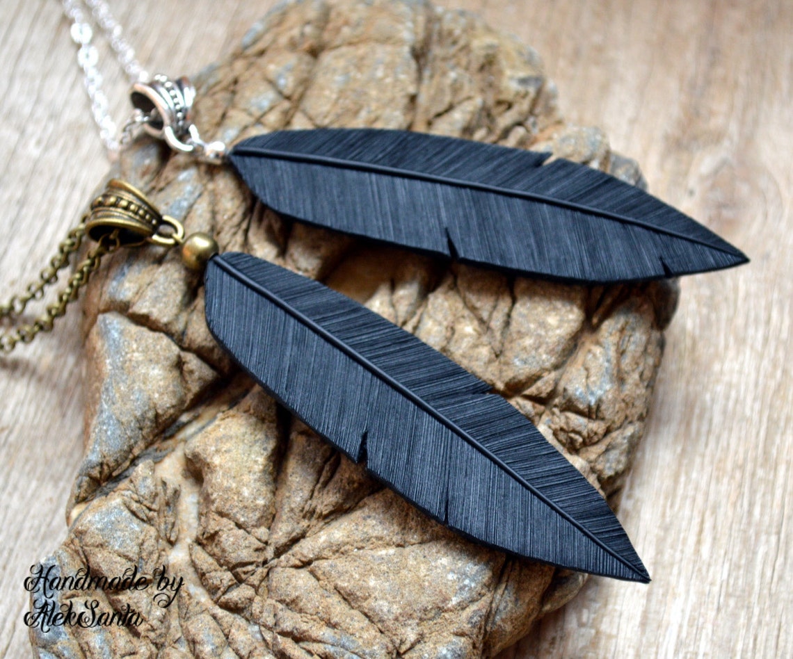 - Black feather necklace shop