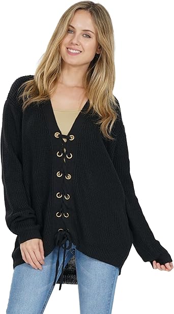Women's lace up sweater clearance, Lace Up Oversized Sweater Long Sleeve clearance