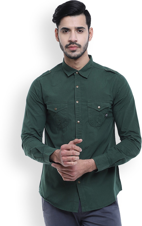 Dark green casual shirt clearance, Buy SHOWOFF Men's Slim Shirt clearance