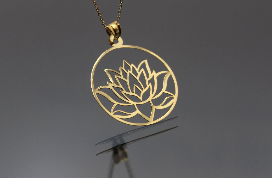Real gold lotus flower necklace clearance, 14k Real Solid Gold Lotus Necklace for Women clearance