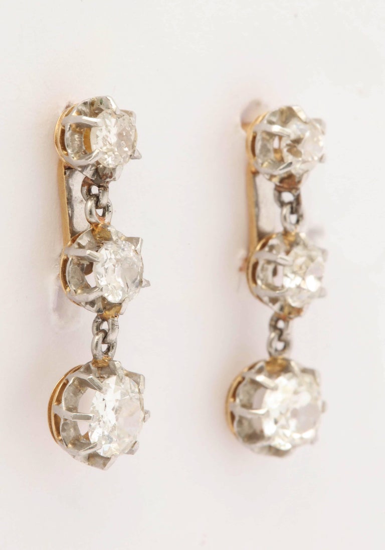 Three stone drop earrings clearance, 1.50 CT Three Stone Diamond Drop Earrings Leverback Earrings | Etsy clearance