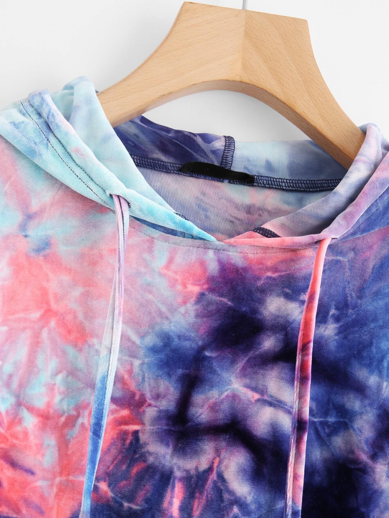 Velvet tie dye sweatshirt clearance, Tie Dye Crop Velvet Hoodie -SheIn(Sheinside) clearance