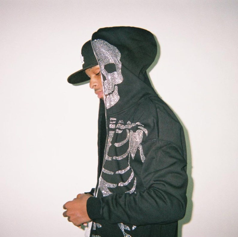 Sparkly skeleton hoodie clearance, Skeleton Rib Rhinestone Hoodie | Etsy clearance