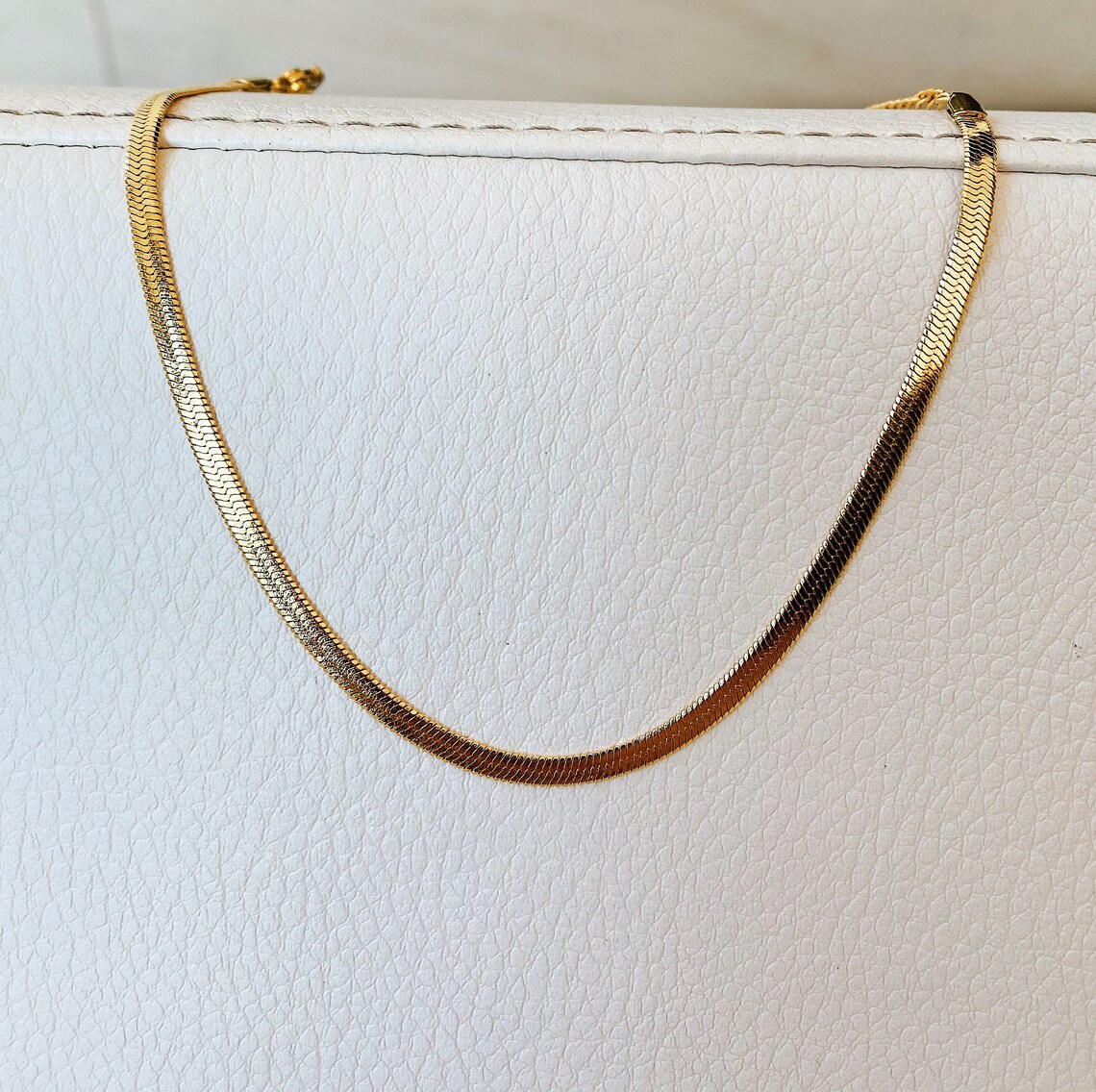 - Gold herringbone anklet