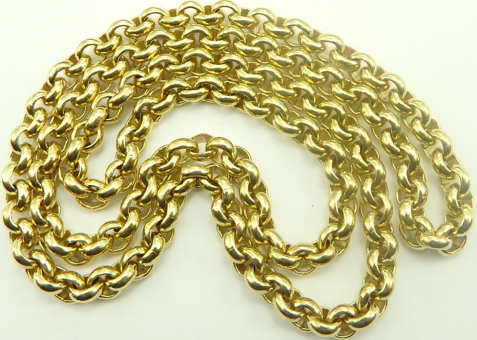 Long belcher chain clearance, Heavy 9ct solid gold 24 inch long yellow gold belcher neck chain weighs 66 grams | Ian Burton clearance