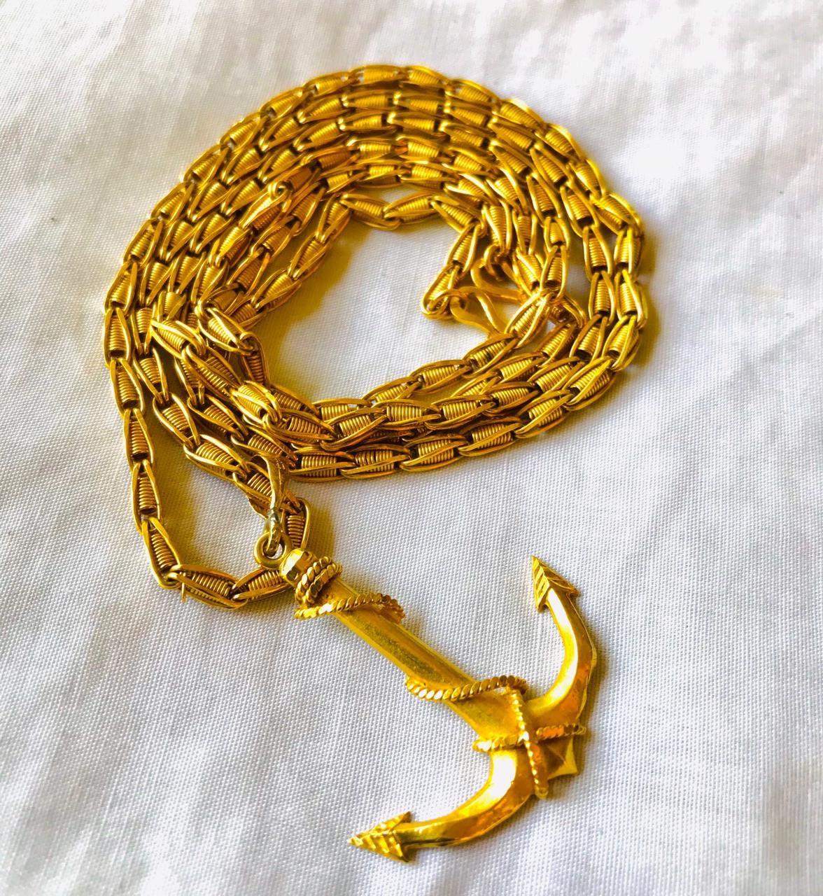 Mens gold anchor pendant clearance, 24K Real Yellow Gold Anchor Pendant 8.5mm Chain Necklace Men | Etsy clearance