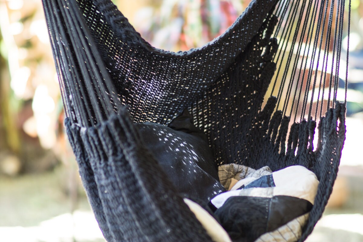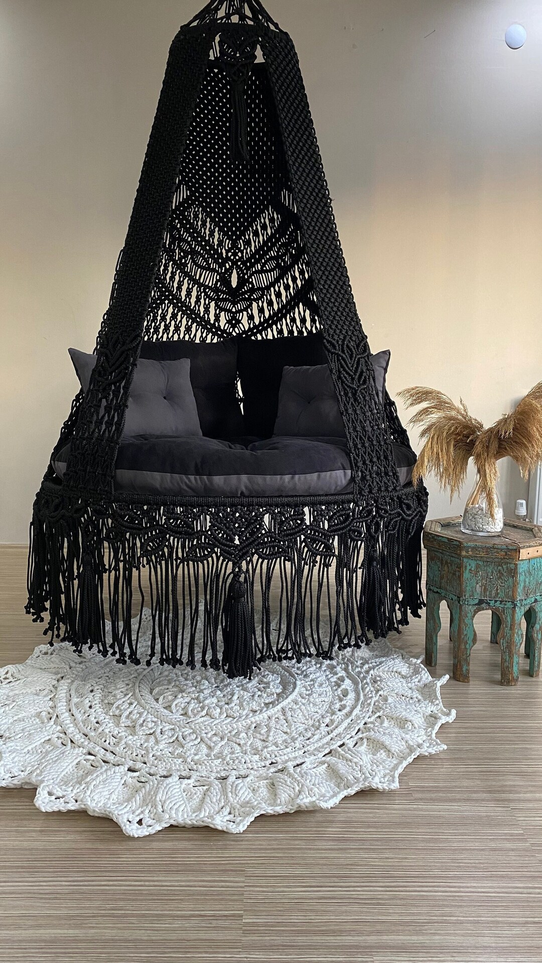 - Black macrame swing chair
