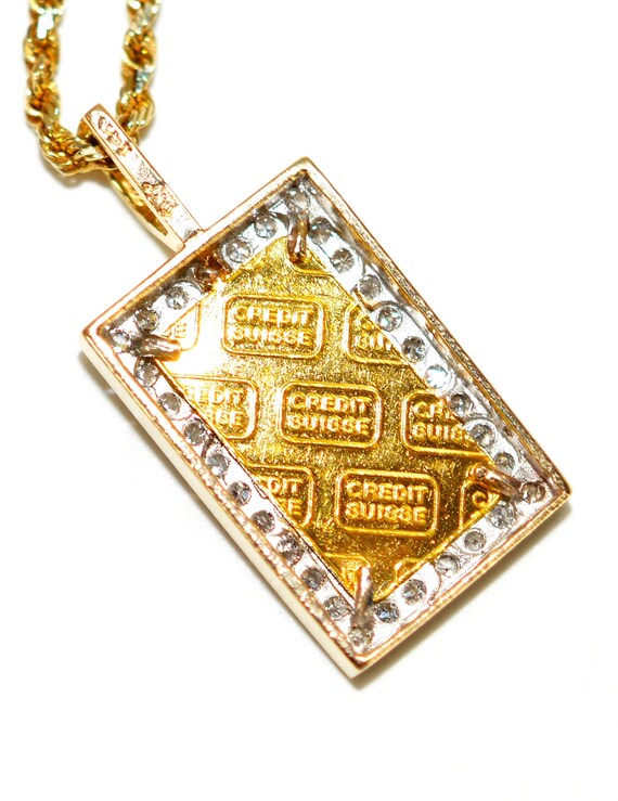 Credit suisse gold necklace clearance, Lot - CREDIT SUISSE 10GR 999.9 GOLD BAR PENDANT NECKLACE WITH 14K YELLOW GOLD NECKLACE clearance