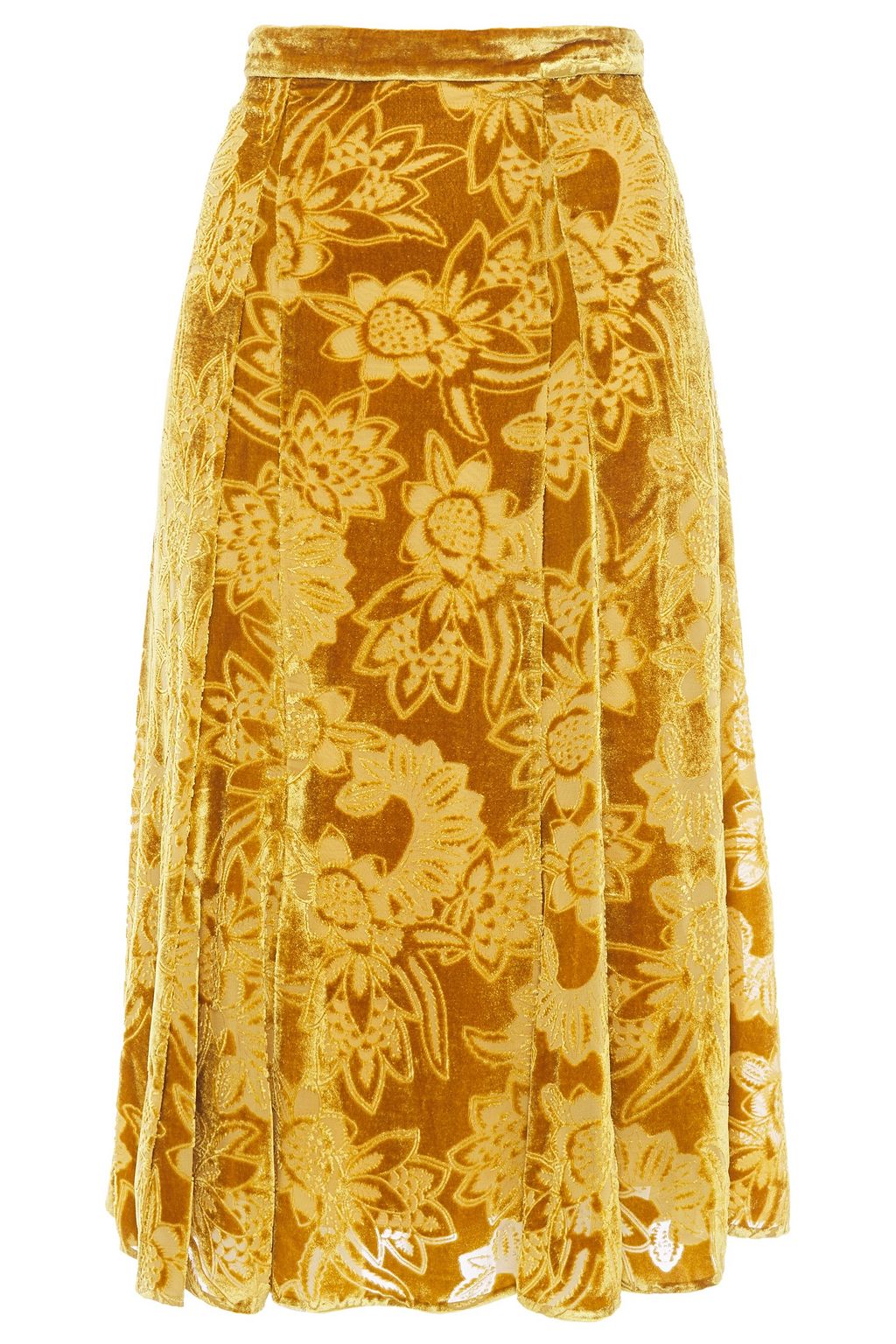 Velvet skirt mustard clearance, Mustard Zuri pleated devoré-velvet clearance