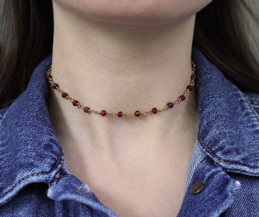 Ruby rosary necklace clearance, Red Ruby Rosary Chain Choker Necklace Dainty Rosary Choker | Etsy clearance